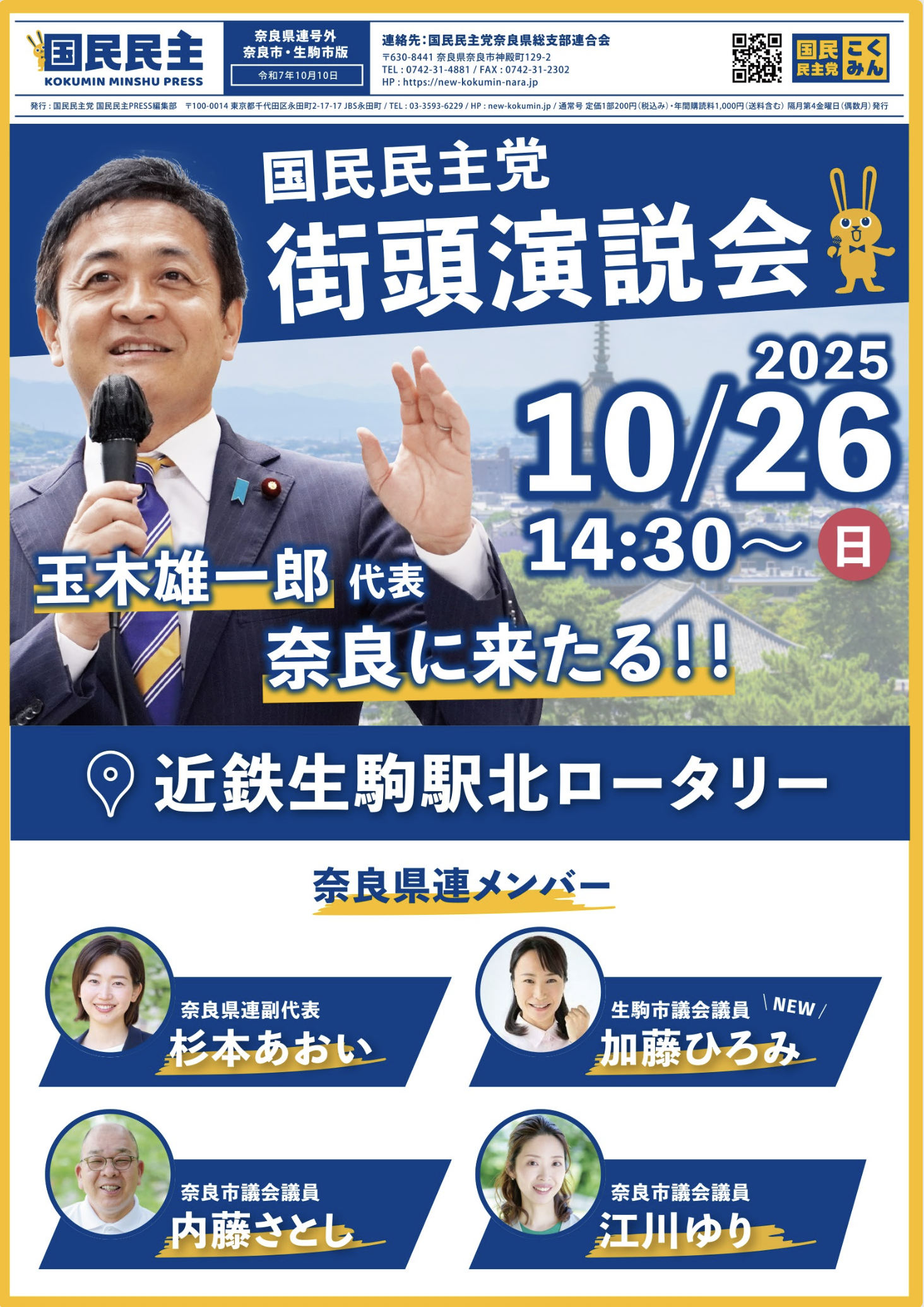 街頭演説会10月26日(日) 玉木代表、奈良に来たる!