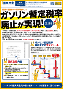 国民民主PRESS・号外「ガソリン暫定税率廃止実現!」版(令和7年11月6日)を発行しました。